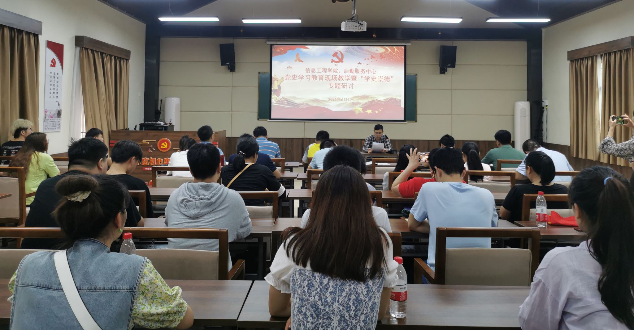 本网讯(通讯员 颜叶娟) 6月1日,信息工程学院师生党员、后勤服务中心全体党员赴红六军团指挥部旧址开展现场教学暨“学史崇德”专题研讨。