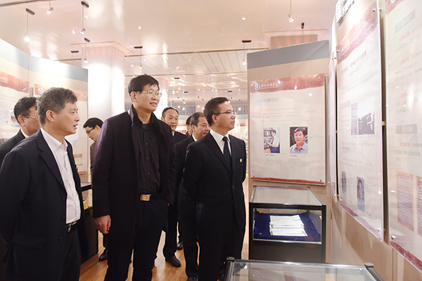 欧阳晓平院士还饶有兴致地参观了校史展览馆,对学校近年来的发展成就感到振奋,连连称赞。