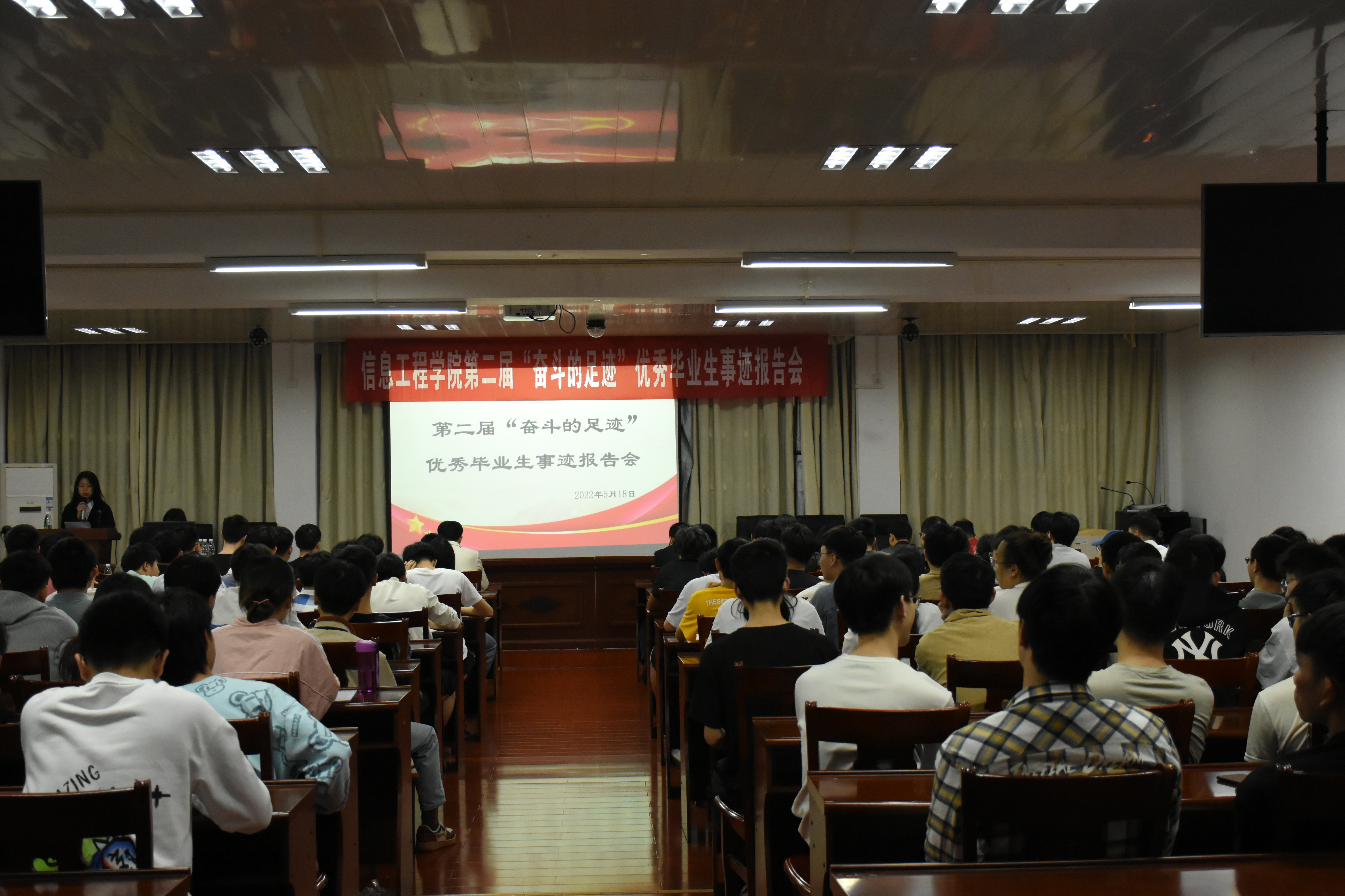 本网讯(通讯员 郭靖)5月18日,我院举办第二届“奋斗的足迹”优秀毕业生事迹报告会。院党总支副书记夏汉伟、全体辅导员、优秀毕业生代表以及2019级学生参会。