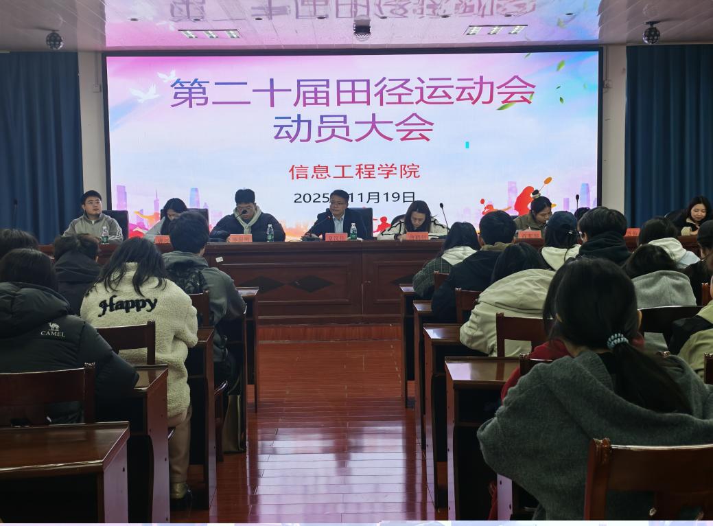 本网讯(通讯员 段欣 欧文富)为凝聚学院力量,鼓舞运动健儿士气,全力备战校运会,11月19日,我院召开第二十届田径运动会动员大会。学院党总支副书记夏汉伟、学工办主任唐鹤轩、各年级辅导员、教练员、全体参赛运动员及工作人员参加。