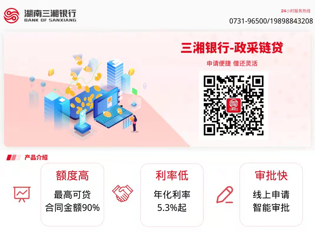 下一步,三湘银行将继续升级“电子卖场融资贷款”,发挥政府采购场景优势和金融机构产品优势,灵活运用政府平台和政府数据,不断打磨产品,与政府一同合力破解中小微企业融资难、融资慢、融资贵的困境,服务我省中小微企业成长,助推“三高四新”战略实施,促进实体经济高质量发展。