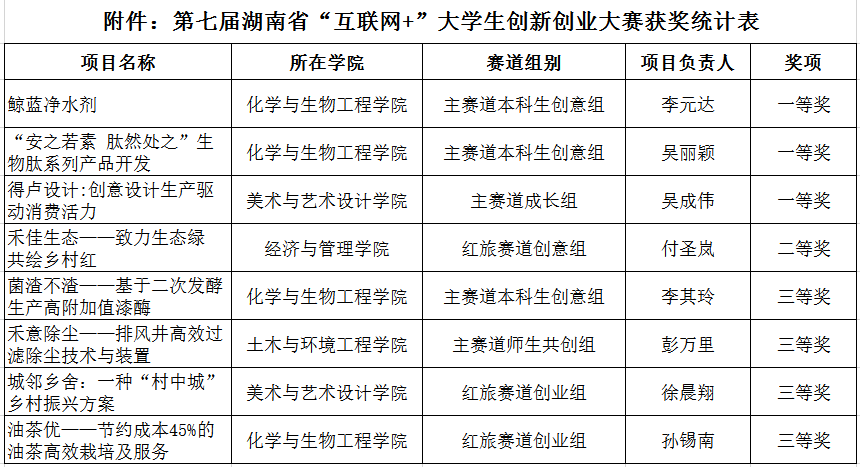 附件:第七届湖南省“互联网+”大学生创新创业大赛获奖统计表