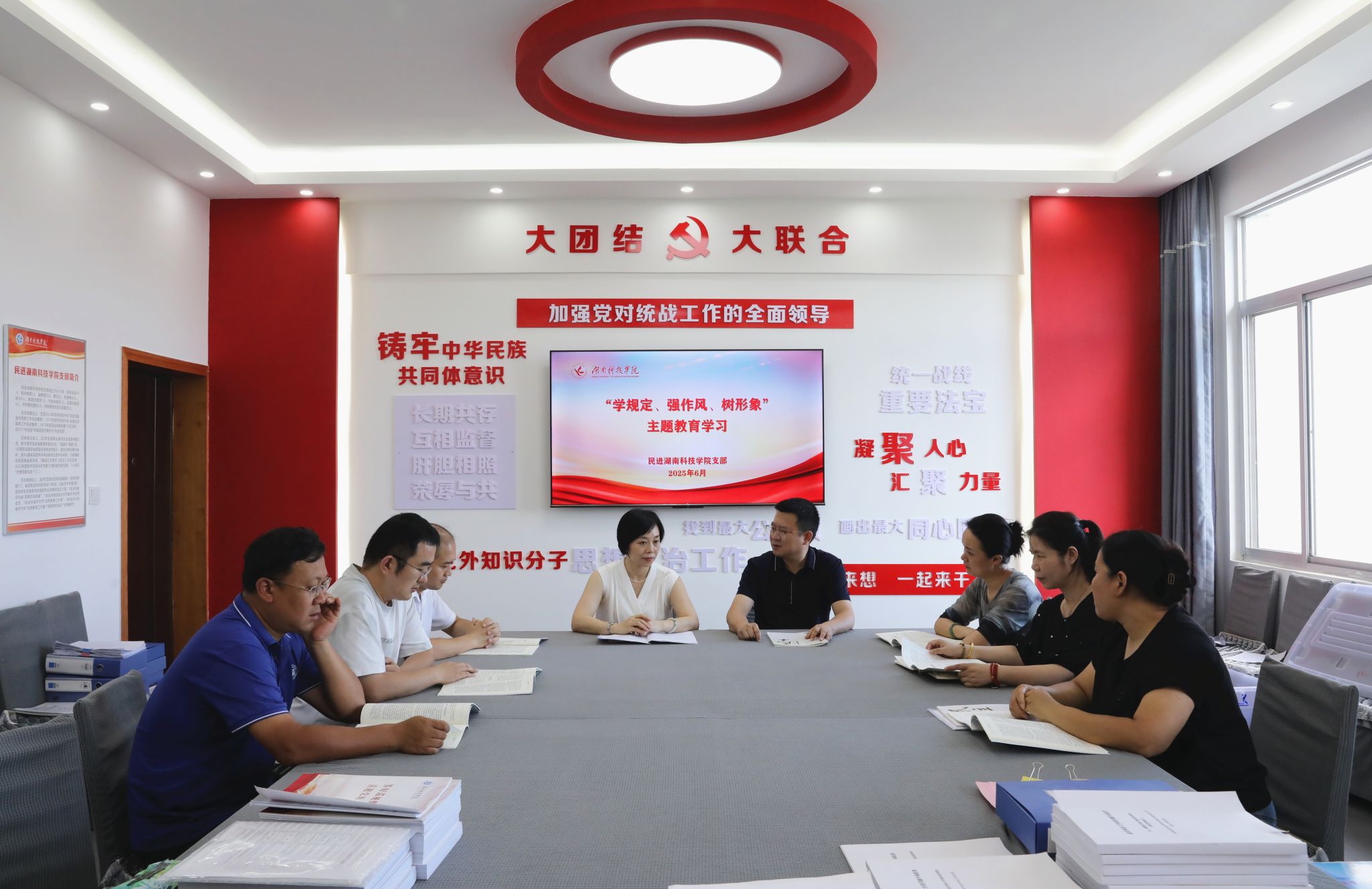 本网讯(通讯员 李小雨 李焕品)6月27日,民进九游在线支部召开“学规定、强作风、树形象”主题教育学习会,深入学习贯彻中共中央八项规定精神,全面加强纪律作风建设。支部主委何丽萍主持会议并讲话。
