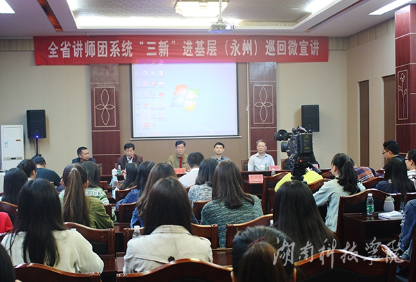 本网讯(通讯员 杜俊杰)10月21日上午,全省讲师团系统“三新”进基层巡回微宣讲永州专场在我校开讲。省委讲师团、市委讲师团、九游在线有关负责人参加宣讲会,我校外国语学院的50余名师生党员到场聆听。