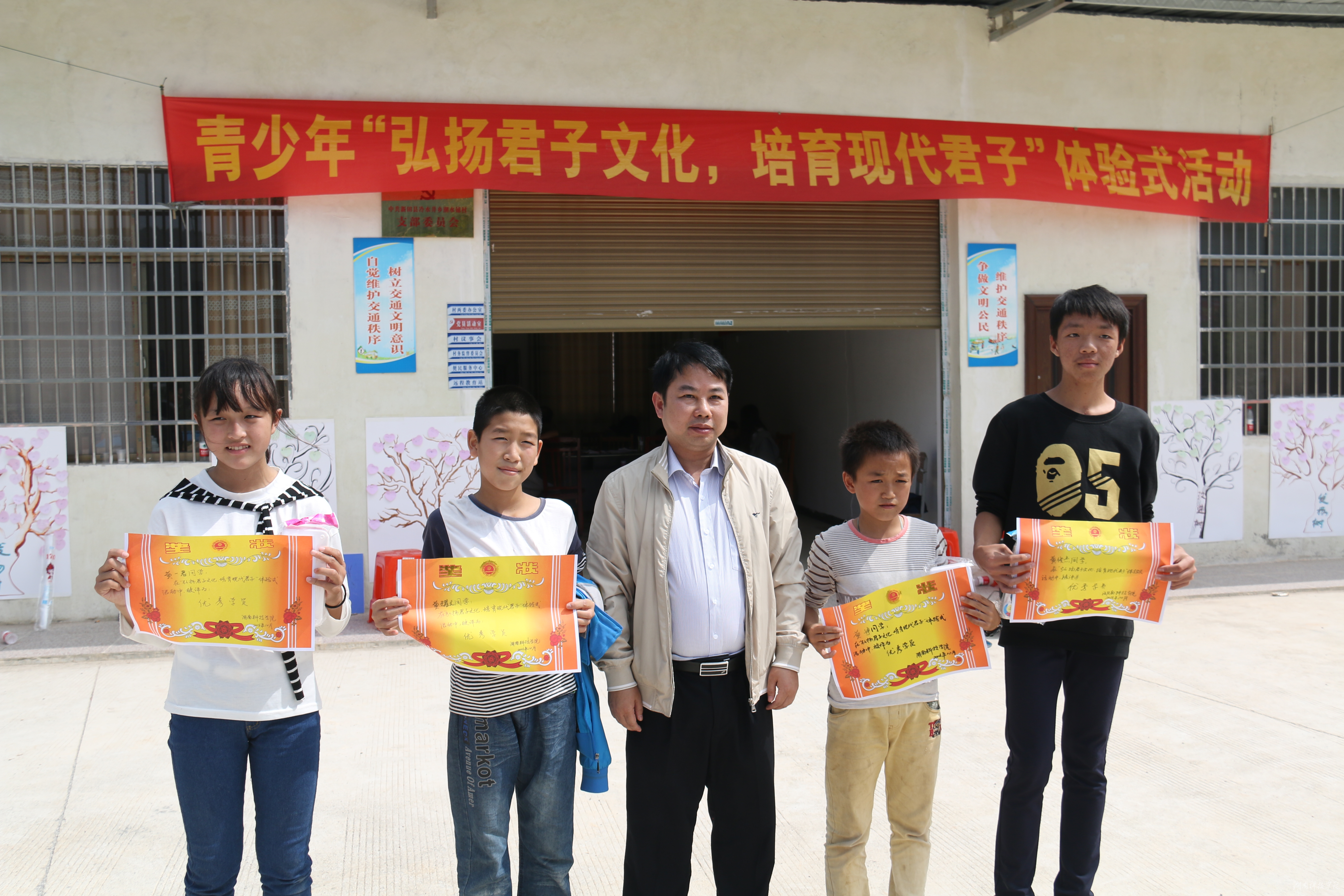 本网讯(记者 罗磊 何霞 摄影 严耀)为让更多的贫困山区孩子接受中国传统文化教育,10月16日,我校副校长李常健率党委组织部党支部到我校扶贫点新田县龙泉镇潮水铺村与贫困户53名子女,开展了青少年“弘扬君子文化,培育现代君子”体验式活动。