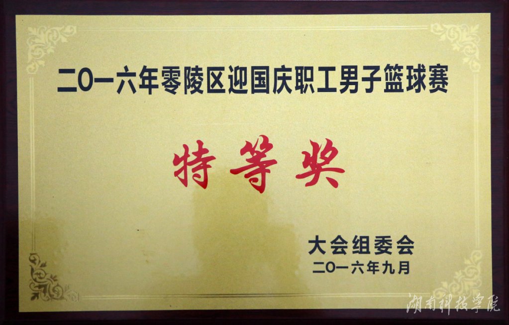 本网讯 9月24日,零陵区2016年“迎国庆”职工男子篮球赛在区政府篮球场落幕,我校教工男子篮球队以全胜且均大比分领先的佳绩荣获特等奖。