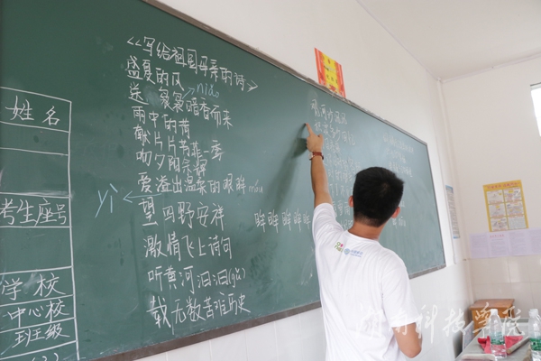 这是传媒学院社会实践服务团连续第二年深入江永县松柏瑶族乡中心小学开展帮扶活动。松柏乡是瑶族乡,居民大多有着自己独特的语言和风俗习惯,普通话基础水平不高,志愿者们在课堂上着重加强对小学生们普通话的训练。值此中国共产党成立95周年之际,她们带领小学生学习这首赞颂祖国的诗,也是送给祖国母亲最美好的祝福。