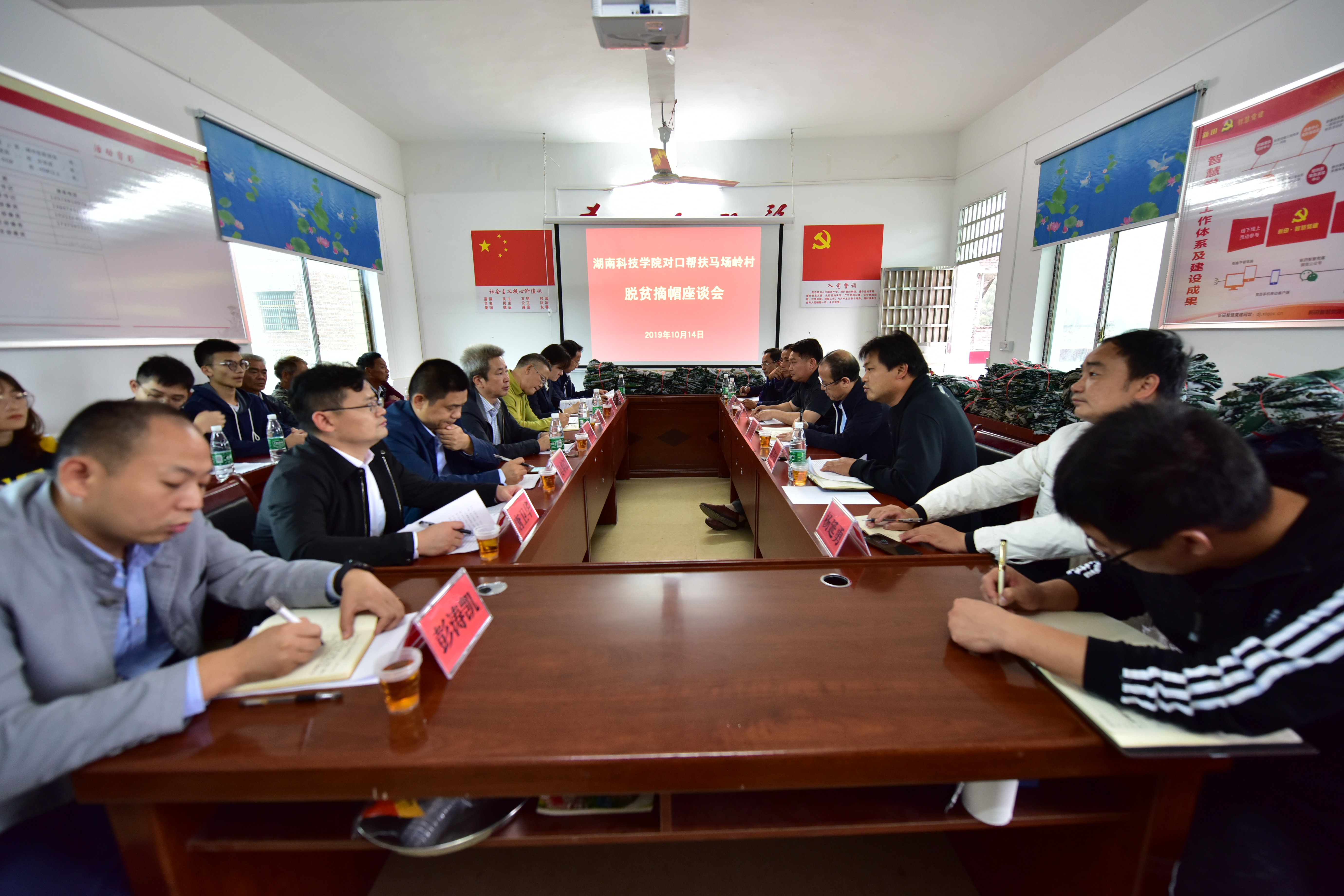 座谈会上,学校驻马场岭村扶贫工作队队长邓先军汇报了驻村以来的帮扶工作举措、帮扶成效以及当前脱贫攻坚过程中存在的困难和问题。枧头镇党委书记刘雄辉介绍了镇、村脱贫攻坚的情况,马场岭村村主要干部和村民代表,志愿者代表理学院2019级学生易梦晰分别发言。