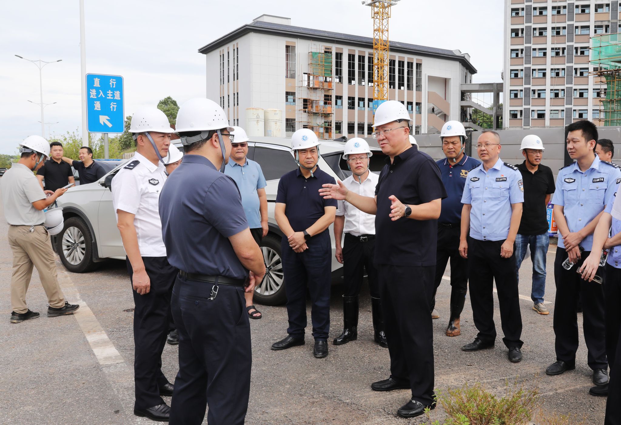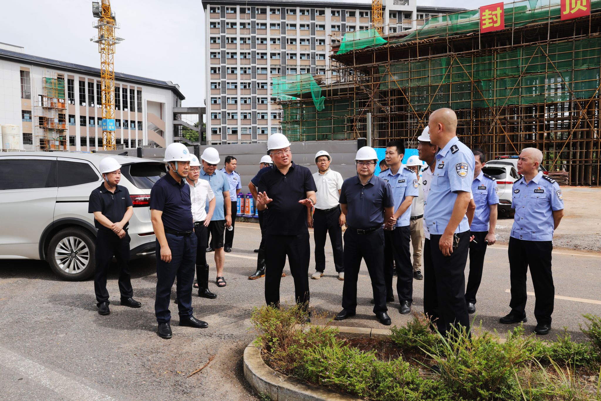 本网讯(记者 谢志豪) 8月15日,永州市副市长、市公安局局长夏葛桉,零陵区委书记赵立平,市公安局交警支队支队长宋志雄、政委朱峻波一行深入学校新南大门建设现场开展专题调研,实地督导项目推进与周边交通保障工作。校长黄创霞,副校长李常健、何福林、何海陪同调研。