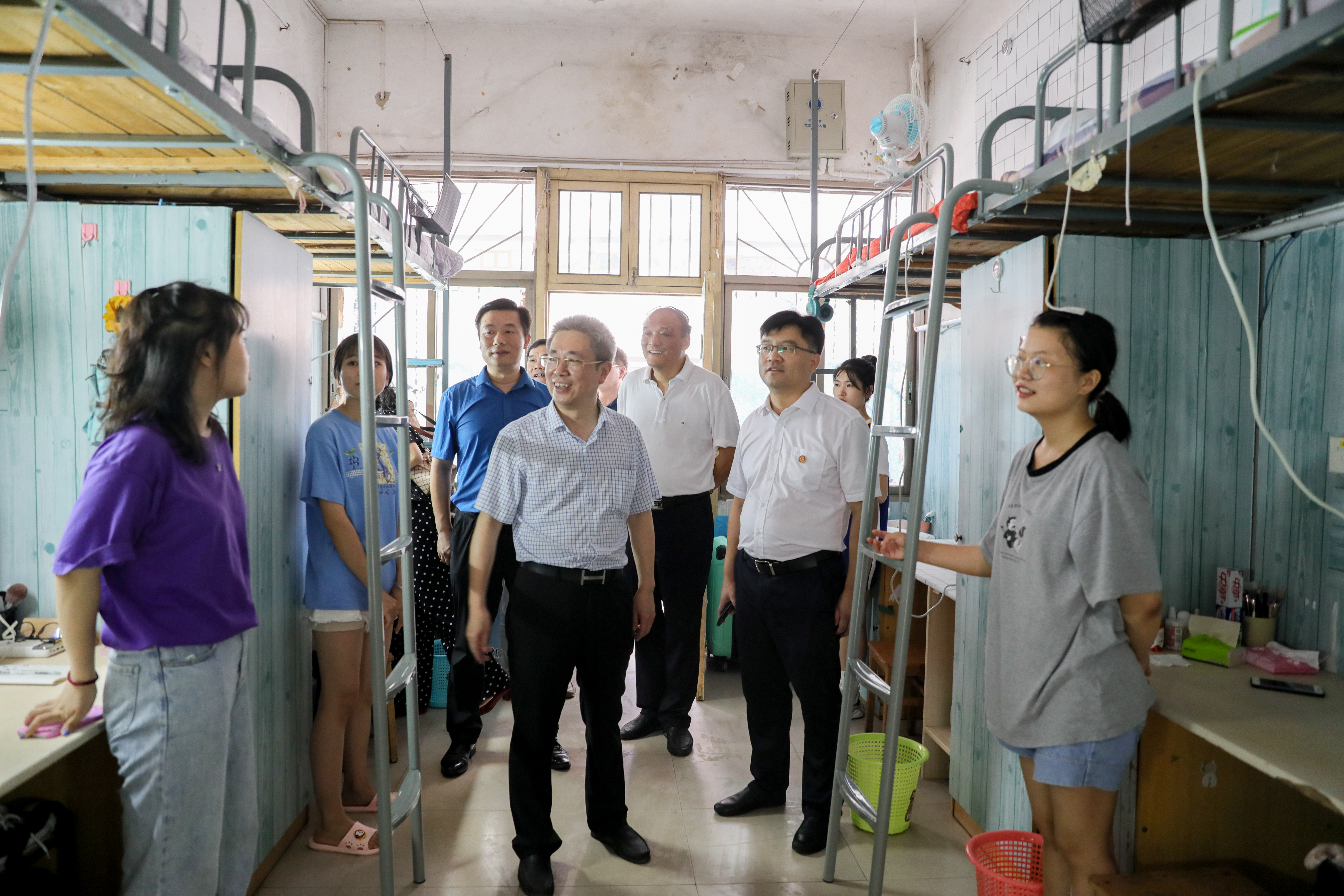 “回校后感觉如何?”“这学期有哪些学习打算?”……走访每一间宿舍时,校领导都与同学们亲切攀谈,详细询问了大家返校途中的防护以及来校后的住宿和饮食等情况,嘱咐大家强身健体,保持良好的生活规律,以全新的面貌迎接新学期的学习和生活。