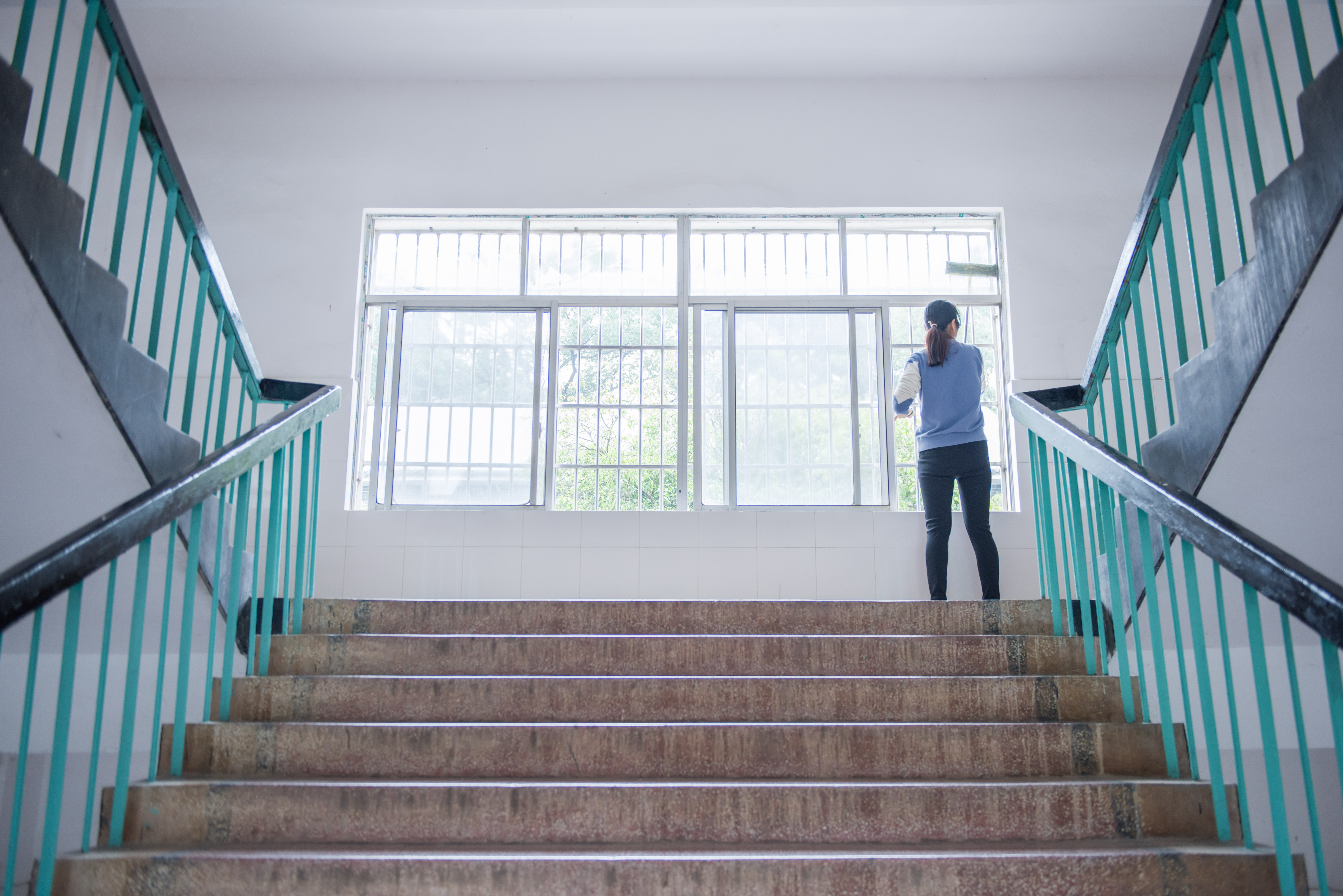老师和学生利用课余时间打扫寝室和教学区卫生