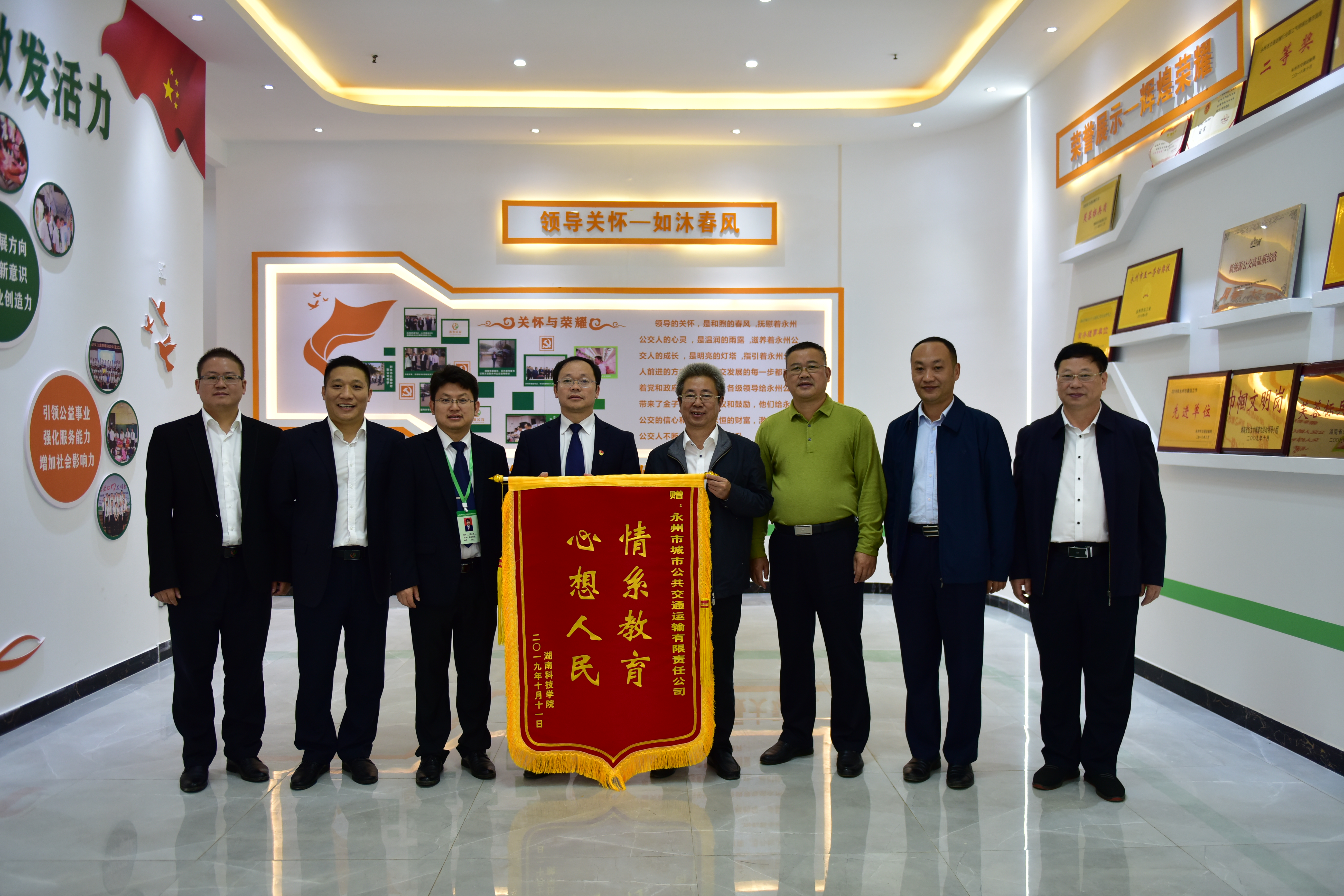 本网讯 10月15日,党委书记曾宝成前往永州市公交公司,把一面绣有“情系教育 心想人民”的锦旗送到该公司党委副书记、总经理蒋俊手中,感谢该公司今年8月开通九游在线至永州火车站303路公交车,为师生出行提供便利。党委委员、组织部长何福林,党委委员、宣传部长杨涛,学工部长唐华山参加赠旗仪式。