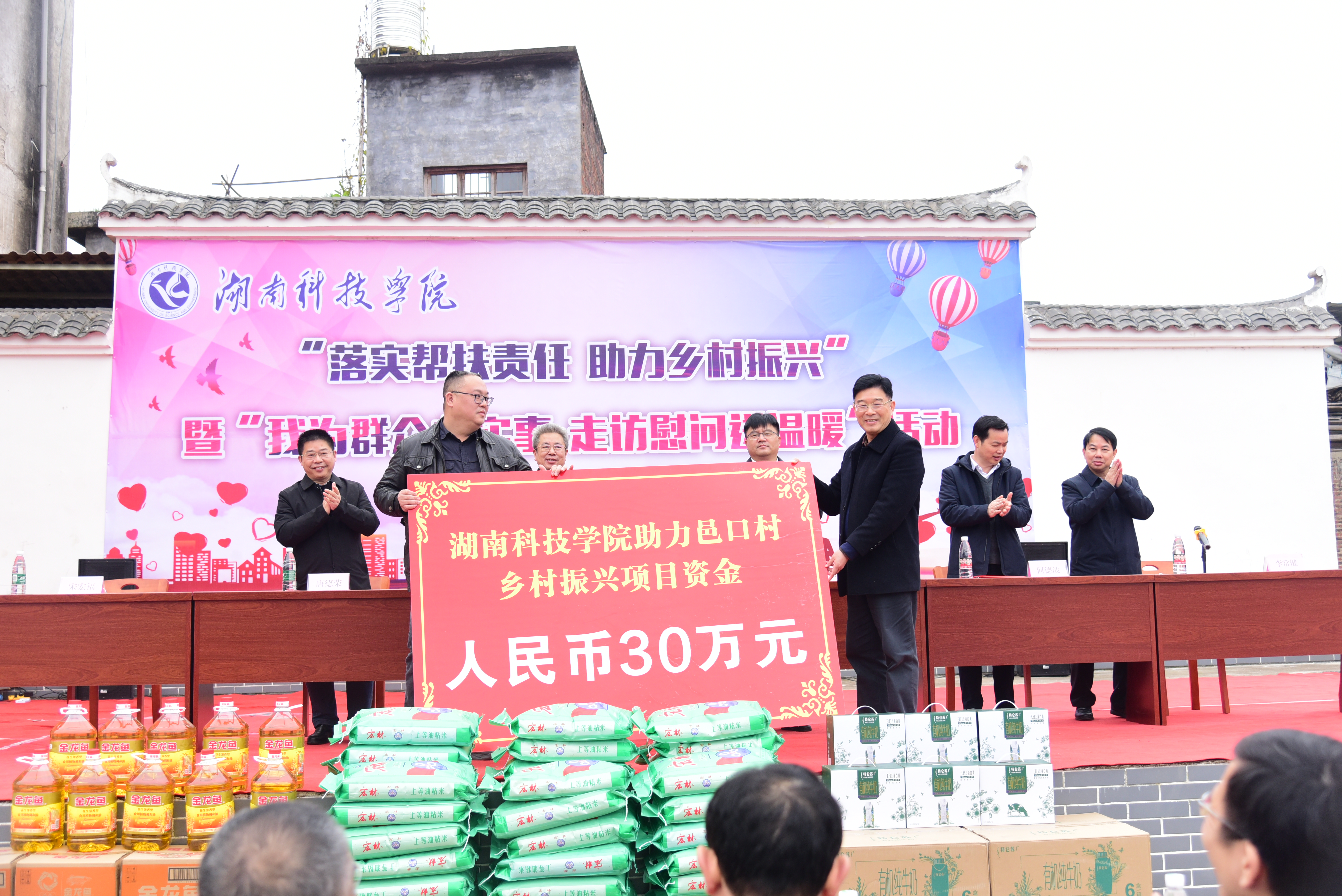 本网讯 为认真贯彻落实习近平总书记关于“三农”工作的重要指示精神,扎实推进邑口村实施乡村振兴战略行动各项部署,1月12日,党委书记曾宝成,党委副书记、校长李钢,校领导宋宏福、李常健、吴小林、何福林、陈灿军、郑银芳、何海到江永县开展“落实帮扶责任,助力乡村振兴暨我为群众办实事,走访送温暖”活动。江永县委书记唐德荣,县委副书记、县长何德波,县委副书记李林,县委常委、组织部长李勇,副县长陈小明出席活动。