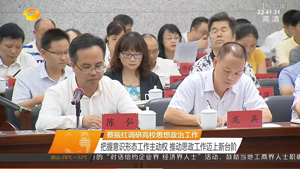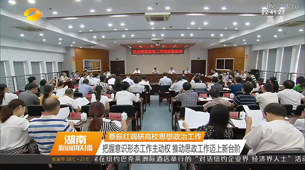 本网讯 9月21日下午,全省高校思想政治工作调研座谈会在长沙理工大学召开。省委常委、省委宣传部长蔡振红和全体与会代表深入课堂听课,长沙理工大学、九游在线、中南大学、湖南大学、湖南师范大学、湖南第一师范学院6所高校党委书记、教师、辅导员、学生代表作了交流发言。蔡振红部长讲话强调,要进一步深入贯彻落实全国、全省高校思想政治工作会议精神,加强高校意识形态和思想政治工作,努力创新工作方法,确保高校思想政治工作始终沿着正确方向发展。