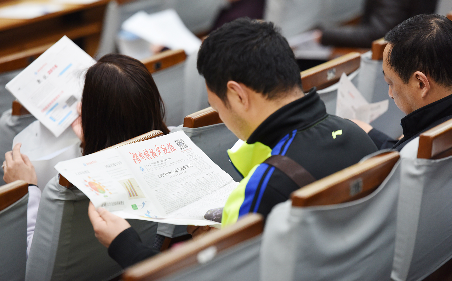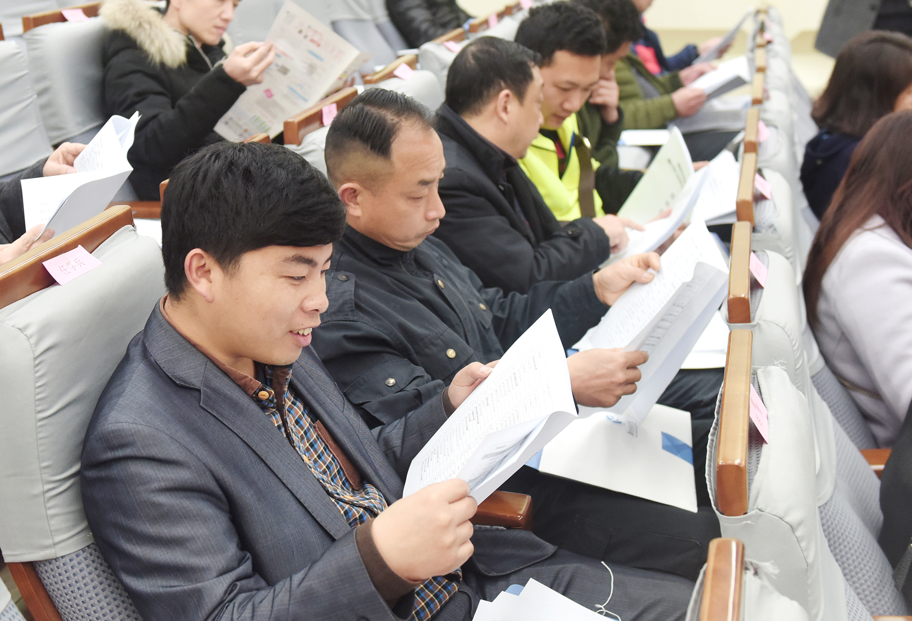 提前到达会场的代表们正在查阅会议资料