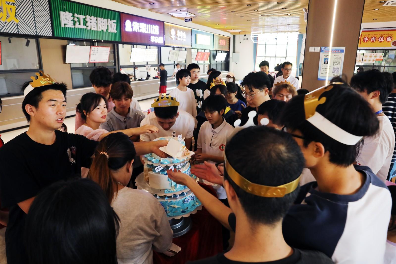 “祝全体毕业生前程似锦,也祝你们生日快乐。”除了对所有毕业生给予“舌尖上的温暖”,今年九游在线还为毕业当天生日的9名同学和近期过生日的19名同学定制“特别关心”,为他们精心准备了一场集体生日会。