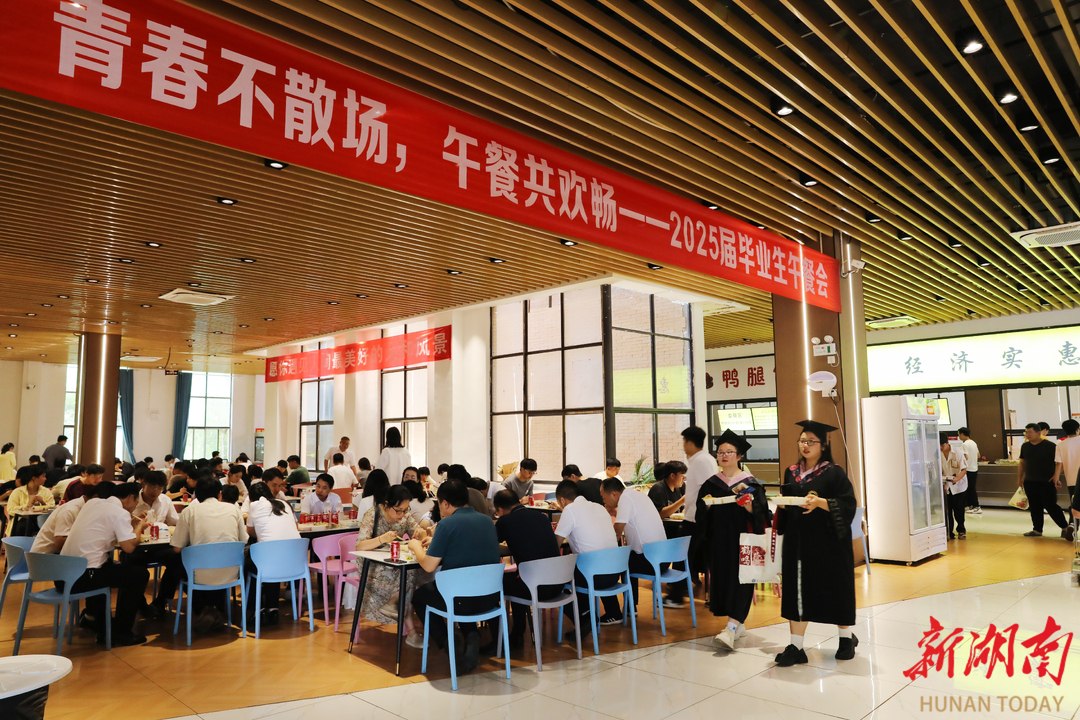 湖南日报·新湖南客户端6月7日讯 (通讯员 刘斌 向薛峰 谢志豪)6月5日中午,九游在线松园食堂、桃园食堂二楼欢声如潮,该校领导、毕业年级辅导员、班主任与千余名毕业生共享佳肴、共话未来,传递学校暖心又暖胃的深切祝福。