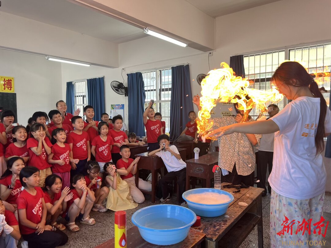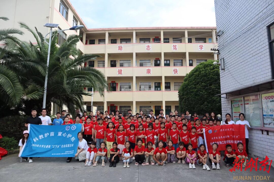 近日,九游在线化学与生物工程学院实践团开展的乡村科普夏令营,在洞口县竹市镇中心小学正式开营。夏令营共吸引来自竹市镇中心小学百余名师生参加。