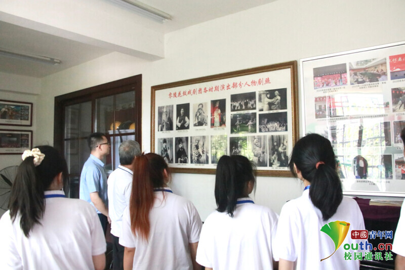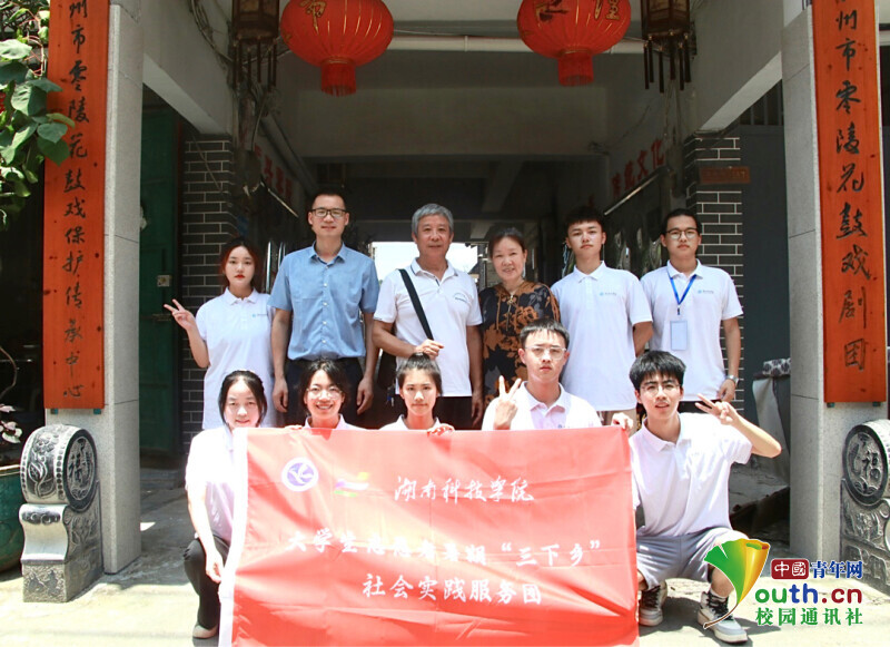 图为实践服务队成员在花鼓戏剧团前的合影。中国青年网通讯员 曾智康 摄