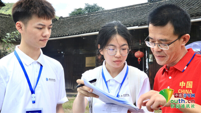 图为实践服务队成员在开展问卷调研。中国青年网通讯员 张浩亮 摄