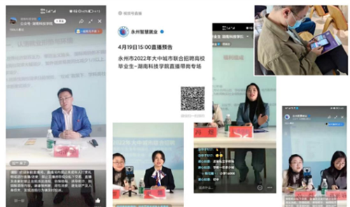 本次直播带岗专场,直播内容丰富,干货十足,招生就业处副处长冯煜、永州人社局就业科的负责人、招聘企业负责人组成了主播团队,现场解读了就业创业政策、创业担保贷款政策、求职创业补贴政策和青年见习岗位及补贴,回复了直播咨询和提问;中国邮政储蓄银行永州分行、零陵区日升学校、道州玉潭学校、湖南恒伟药业4家单位通过“单位展示+直播带岗”的方式,更加全面的展示企业形象,详细讲解岗位要求和薪资待遇;招生就业处处长胡清华贴心准备了求职分析、优势识别等职业指导。双向在线的沟通方式,互动性高,参与感强,观看人次达到了4360人次,就业政策宣讲效果明显,求职招聘更加高效便捷,职业指导更具针对性。据统计,本次直播带岗活动,互动弹幕累计达到633条,在线投递简历达到378份,初步达成就业意向 86人。