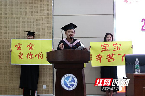 “微笑、拨穗、正冠、授学位,握手,合影……这是您第四年站在这里为毕业生们授予学位。四年的坚持,令我们感动不已,我们想深情地道一句:宝宝,您辛苦了!”