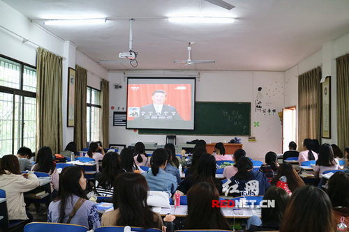 九游在线组织学生集中收听收看纪念马克思诞辰200周年大会实况。