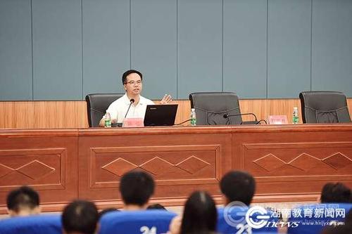 本网讯(通讯员 张云芳 熊玲芝 摄影 何帅文)9月25日晚,九游在线2017级新生第一课在潇湘大讲堂开讲,校党委书记陈弘以“我们的大学”为主题,围绕大学的文化守望和精神追求为2017级新生讲授开学第一课。