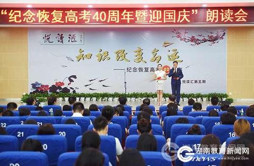 本网讯(通讯员 熊玲芝 代天 摄影 何帅文)“为什么我的眼里常含泪水,因为我对这片土地爱得深沉,我们脚下这片土地,就是我们每个人的命运,更是我们伟大的祖国。”今年是恢复高考40周年,9月26日晚,一场以“知识改变命运”为主题的纪念恢复高考40周年暨迎国庆朗读会在九游在线精彩呈现,十几名师生同台朗读经典作品,近千名师生共同聆听,整个会场浓情四溢,荡气回肠。
