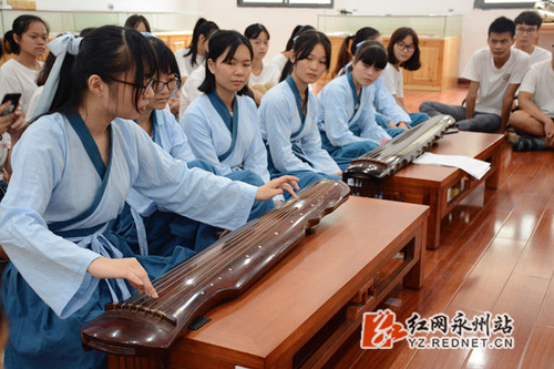 颁奖典礼上,获奖学生代表弹奏古琴。