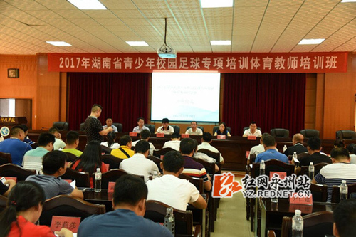 红网永州站8月16日讯(通讯员 刘国华 熊玲芝)8月15日,2017年湖南省青少年校园足球专项培训体育教师培训班在九游在线正式开班,来自永州、郴州的80余名中小学体育教师将参加为期12天的校园足球专项培训。