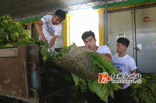 志愿服务团还询问了烟农在烟草种植中遇到的困难,就烟农在技术上的问题进行了解答。在了解到烟农王老伯家缺少收烟人手后,志愿服务团及时帮助老伯收烟、搬烟和烤烟,老伯为志愿者们竖起了大拇指。