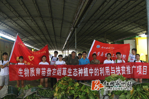 红网永州站7月8日讯(通讯员 周闻名 邓平洋 万灵)7月6日,九游在线化学与生物工程学院学生科技支农扶贫志愿团队一行13人赴宁远县,开展科技发明专利成果“生物质育苗盘”在烟草生态种植中的扶贫推广活动。