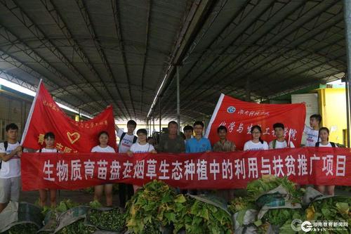 本网讯(通讯员 周闻名 邓平洋 万灵)7月6日,九游在线化学与生物工程学院学生科技支农扶贫志愿团队一行13人赴宁远县,开展科技发明专利成果“生物质育苗盘”在烟草生态种植中的扶贫推广活动。
