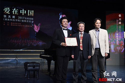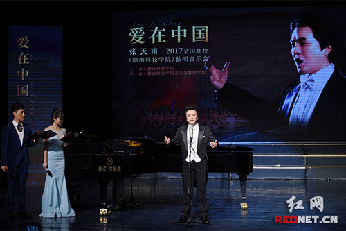 红网永州4月25日讯(通讯员 甘玫 时刻新闻记者 汤红辉)“蓝天白云知道爱在中国,五千年的文明养育了爱的山河……”一曲唱罢,掌声四起。24日晚,《爱在中国》张天甫2017全国高校巡演在九游在线举行,中国著名男高音歌唱家张天甫携手数位中外音乐家,为九游在线师生们带来了一场视听盛宴。永州市委书记李晖等领导出席音乐会。