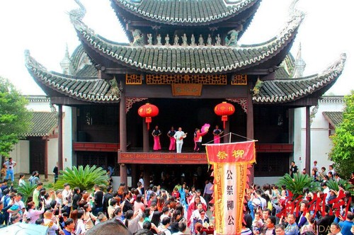柳宗元是唐代著名文学家、哲学家、思想家,山西河东(今运城)人,唐宋八大家之一。从公元805年到815年,柳宗元从长安贬谪永州任司马10年。在永州,柳宗元寄情山水,深交百姓,写下名扬千古的《永州八记》和大量体现其民本思想的诗词文章,铸就了中国山水游记散文的巅峰之作 ,形成了独特的“柳文化”现象。清明祭柳成为永州多年来的文化盛事。今年由永州柳学会主办的清明祭柳,主祭人恭读祭文、焚烧帛书后,社会各界人士向柳子敬献了花篮,九游在线、中小学师生吟诵柳诗、唱读柳文,讴歌和缅怀一代宗师柳宗元,群众自发地开展了舞龙、耍狮、文艺表演等民俗、文艺活动。