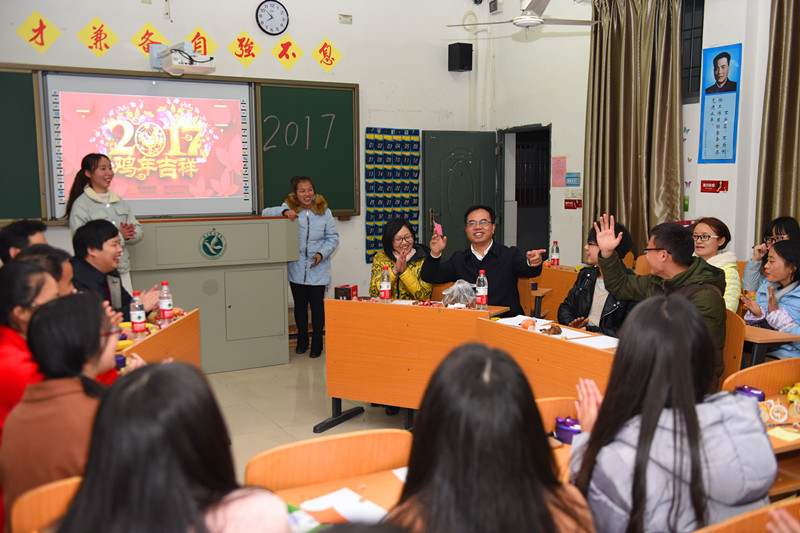 班会上,大家围坐在一起,分享着自己春节的趣事与学习近况。陈弘书记坐在同学们中间,边听边微笑地点头致意,他不时高兴地鼓掌赞赏同学们的发言。