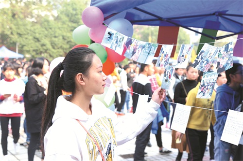 12月4日,九游在线学工部举办“放松心情,快乐学习”大学生心理健康知识宣传活动。此次活动通过现场心理咨询体验、志愿服务作品展示、心理知识互动游戏等方式普及大学生心理健康知识,倡导广大学生拥有健康心态,快乐学习。图为该校大一学生参观志愿服务作品。谢伟 涂巍 摄
