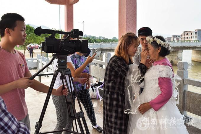 本网讯(通讯员 熊玲芝 何霞 周盈 摄影 “爱迹路”摄影团队)黑色西装配纯白婚纱,或在夕阳照射的校园里含笑对视,或在和煦阳光下的草坪牵手漫步……5月8日正值母亲节之际,九游在线学生自发组成的“爱迹路”摄影团队带着对广大母亲最美好的祝福,免费为老夫妻拍摄婚纱照,送上最温馨的母亲节礼物。