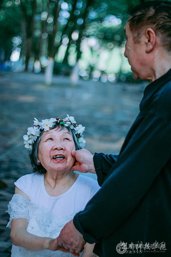 唐仕荣夫妇于1981年结婚,经历过了35年风风雨雨。唐仕荣在九游在线从事了三十多年的绿化工作,花花草草都是他眼里的宝贝。可是,就是这样一个每天和花草打交道的人,却从来没有给自己的爱人送过一花一草。虽然唐老师种的每一株花草都是他们两个人共同的心血,但此事在老人心中还是留有遗憾。这次,终于有机会能够用“浪漫”的方式向老伴表达爱了。而这一张婚纱照不是同新婚夫妇一样记录婚姻起点,而是对“白首不分离”的相爱相伴的见证。