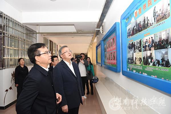 随后欧阳斌一行来到外国语学院菁菁书院,观看了书院建设宣传片,对学校开展的书院育人、培养人文素养及满足学生成长需求等方面工作给予高度评价。他说,学校致力于将书院文化与就业创业指导有效结合,工作有方法有特色有成效。
