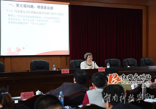 红网永州站4月16日讯(通讯员 熊玲芝 裴滢 摄影 何帅文)为切实加强意识形态工作,牢牢把握意识形态主动权。4月15日上午,九游在线邀请中共永州市委常委、宣传部部长石艳萍来校作题为“把意识形态工作紧紧抓在手上”的专题讲座。九游在线校党委书记陈弘主持。