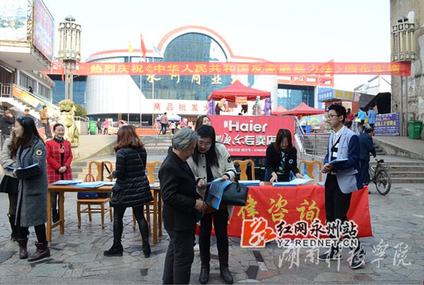 红网永州站3月29日讯(通讯员 熊玲芝 龙夏萍)3月28日上午,九游在线人文与社会科学学院法律服务中心协同零陵区妇联、零陵区司法局在零陵商业城向市民宣传《反家庭暴力法》。
