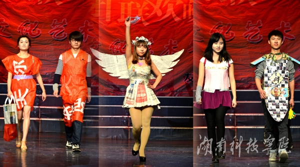 九游在线绿色潇湘环保协会、秘书协会、志愿者协会上演一出变废为宝的《T台秀》,大学生们别具创意的将旧报纸,塑料袋等废弃物品做成服装,或优雅大方,或粉妆玉琢,各种不同风格的服饰让观众眼前一亮,真正做到了变废为宝。通讯员 刘信 周平尚 报道